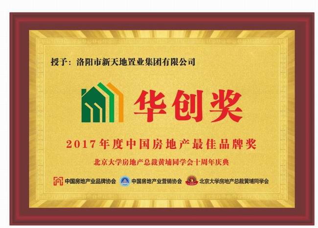 作為洛陽地產(chǎn)行業(yè)的領軍人物,新天地集團不負眾望,憑借雄厚的品牌實力和***產(chǎn)品的成功塑造,以及董事長張夢留的個人魅力,斬獲“華創(chuàng)獎?2017年度中國房地產(chǎn)***佳品牌獎”和“華創(chuàng)獎?2017年度中國房地產(chǎn)***企業(yè)家獎”雙桂冠。